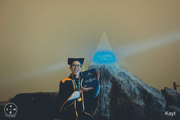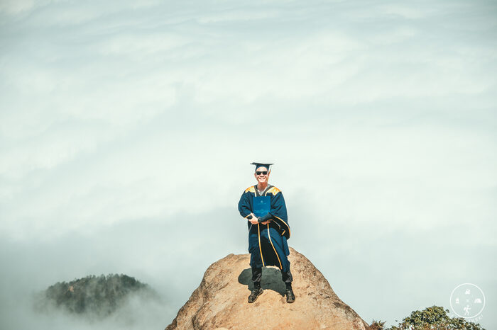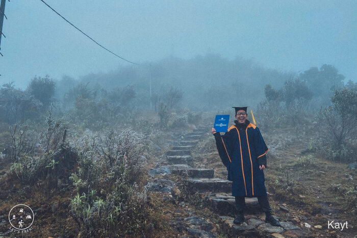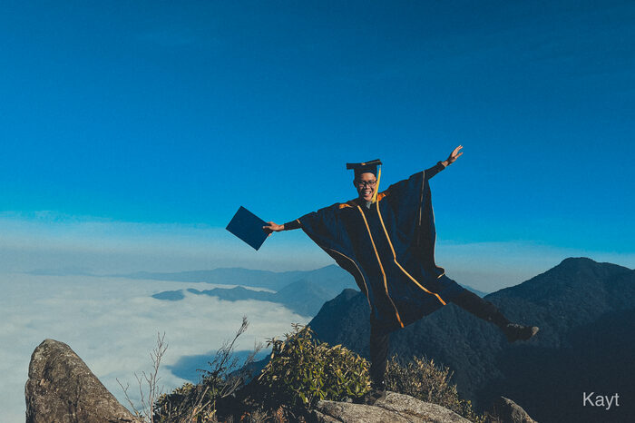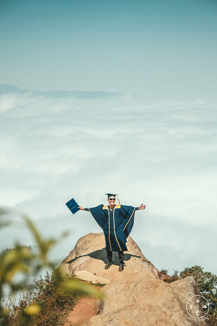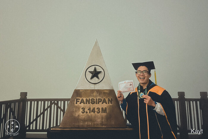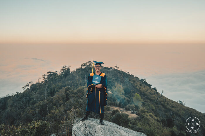 Đặc biệt, Tuấn Khanh đã mặc Lễ phục tốt nghiệp chinh phục 2 đỉnh núi lớn là Fansipan- nóc nhà Đông Dương, Sống Lưng Khủng Long và đỉnh Tà Xùa của tỉnh Yên Bái.