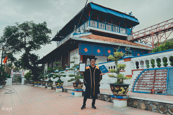 Khanh chia sẻ, Lễ tốt nghiệp là cột mốc quan trọng với bản thân, do đó, nam sinh này đã mặc lễ phục để khám phá và chinh phục nhiều địa điểm nổi tiếng trên khắp Việt Nam như một cách để lưu giữ những kỷ niệm đẹp.