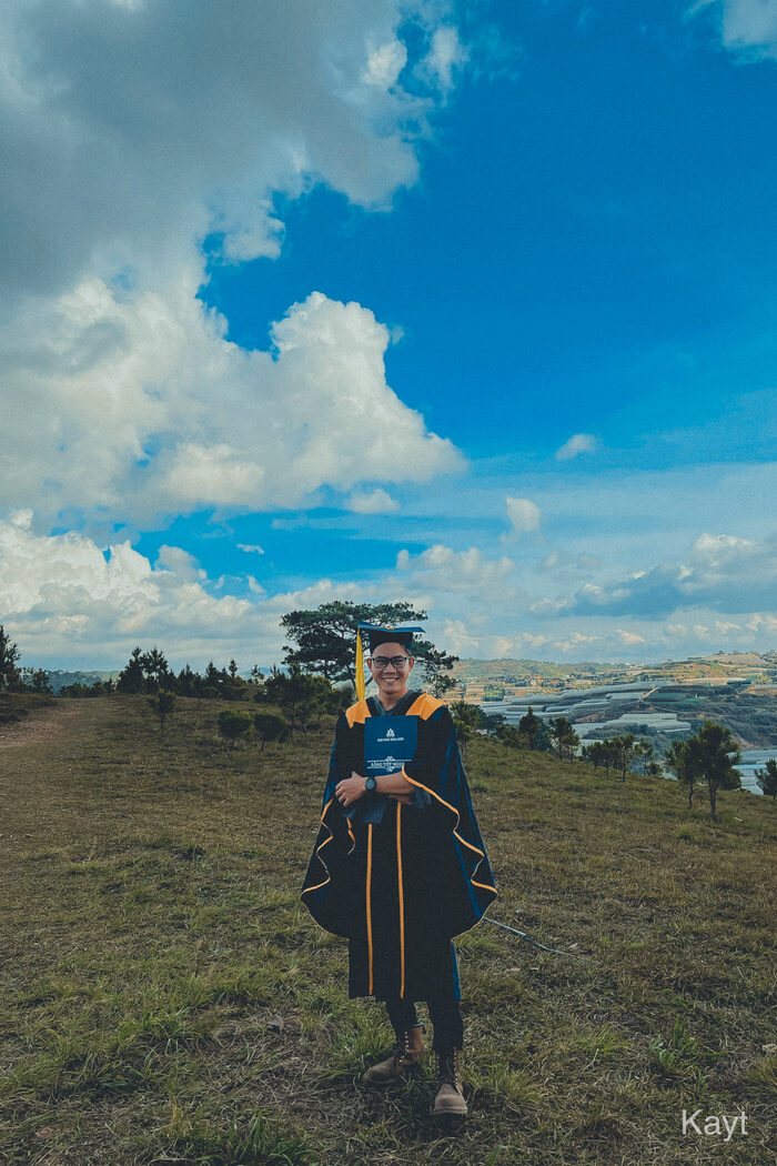Những hình ảnh ấn tượng khác của Tuấn Khanh khi mang đồ cử nhân đi khắp đất nước: