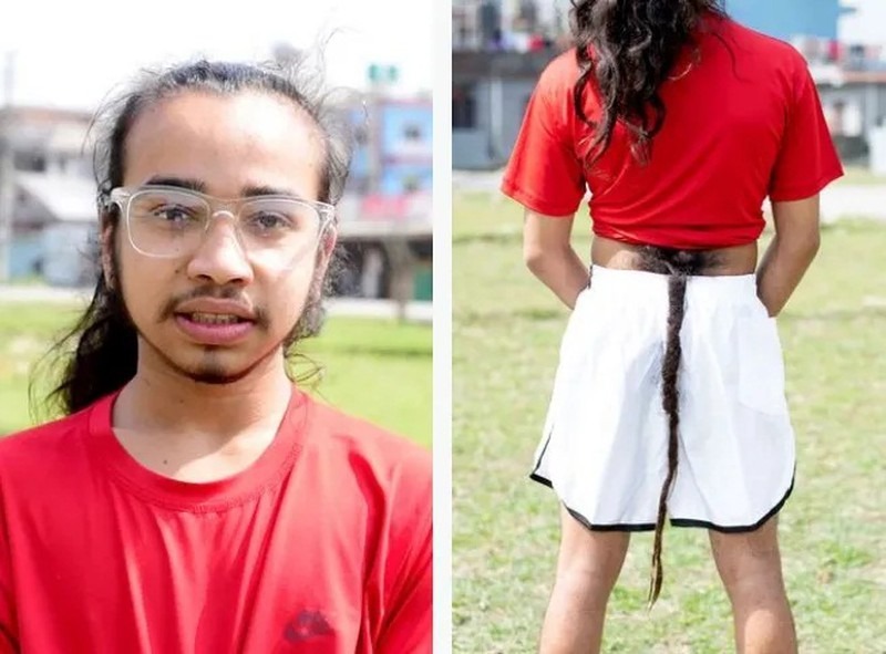 Deshant Adhikari, 16 tuổi, khiến mọi người kinh ngạc và trở nên nổi tiếng ở Nepal sau khi khoe chiếc đuôi dài 70 cm được tết lại gọn gàng trên lưng mình.