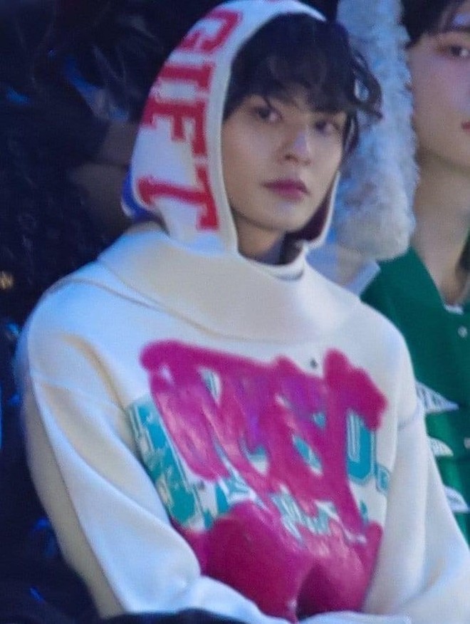 Anh diện hai bộ trang phục, ngồi hàng ghế đầu bên đàn anh cùng công ty - nhóm nhạc DKZ . Diện mạo mới của Đặng Hồng Hải nhận được nhiều lời khen ngợi từ fan Kpop.