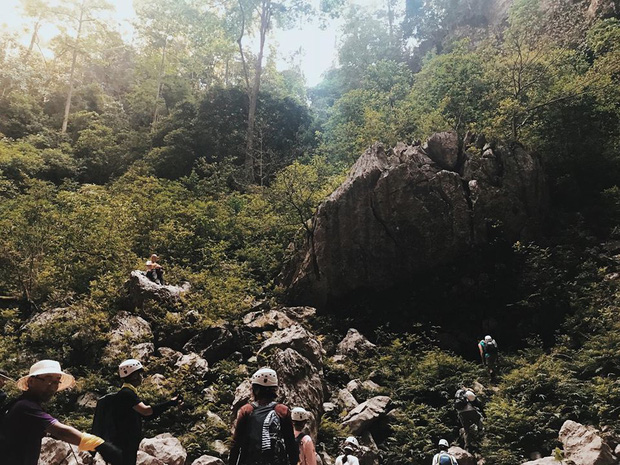 Với mình, trong chuyến hành trình đó thì Kong Collapse là điểm dừng chân mình yêu thích nhất vì có chỗ tắm ngay cạnh chỗ cắm trại. Trong lúc đợi các anh Porter dựng lều và chuẩn bị bữa tối thì mình cùng các anh chị trong đoàn quây quần để nghe bố Steven kể về Kong Collapse, vì tiếng Anh không giỏi nên vừa nghe vừa nhìn theo miêu tả bằng hình thể của bố, đoán rằng bố đang miêu tả về độ dài từ trên đỉnh phía trên xuống tới dưới này.