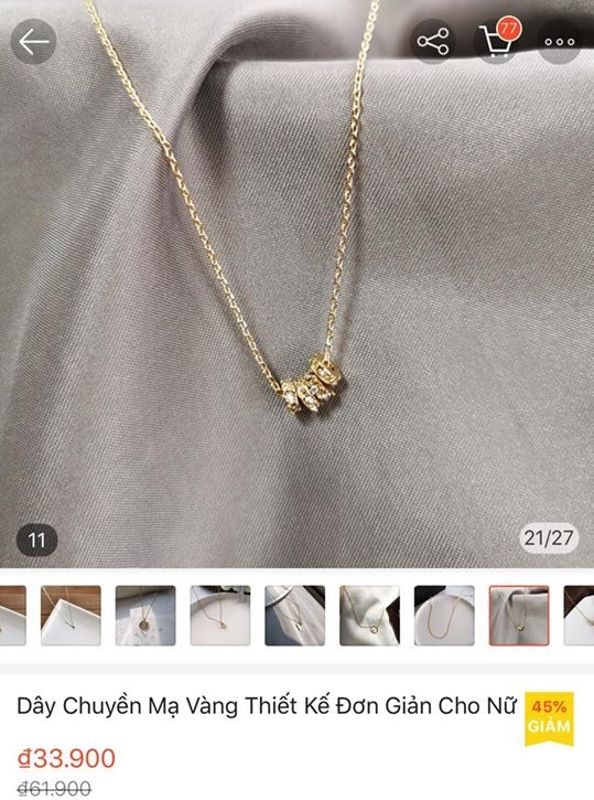 Tuy nhiên sau đó dân mạng nhận ra chiếc dây chuyền ấy được bán trên một trang thương mạng điện tử chỉ có giá 33.900 đồng. Thậm chí nó còn là hàng giảm giá từ 61.900 đồng xuống. Nhìn hình ảnh trùng khớp với tấm hình anh chàng gửi qua thì ai cũng chắc chắn đây có lẽ là sản phẩm đó rồi.