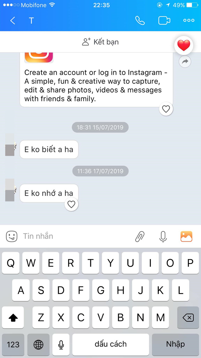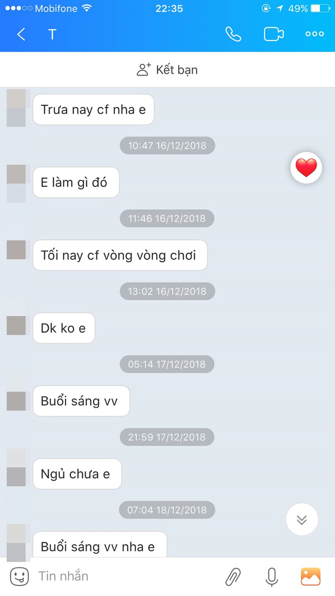 Theo đó, suốt từ tháng 11/2018 đến tháng 7/2019, đều đều hàng tháng chàng trai tên T. lại gửi những dòng tin nhắn chào hỏi, xin làm quen và mời cô gái T.M đi cà phê với lí do "anh em mình cùng quê, quen nhau là có duyên".