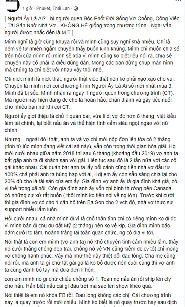 Tuy nhiên cách đây ít giờ, anh chàng bị người quen 'bóc phốt' lăng nhăng, chưa ly hôn đã đăng ký show hẹn hò.