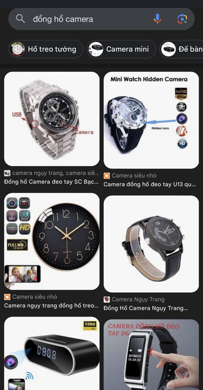 Sau khoảng 30p thay đồ trong phòng, mình mới vô tình nhìn về phía cây sắt trong góc toilet và thấy có 1 vật thể hình tròn màu đen lấp ló dưới 1 chiếc khăn trắng. Khi đến gần, mình phát hiện vật thể nhìn giống mặt đồng hồ đo nước, mình rút chiếc khăn ra mới thấy rõ đó là 1 chiếc đồng hồ cơ, mình còn nghĩ ai đó để quên…. Nhưng khi cầm vào, đồng hồ rất nóng phía mặt sau và liên tục nhấp nháy đèn khi bấm nút. Mình thấy có điều không lành, thật sự mình run bần bật chân tay vì bất an. Team mình tìm kiếm trên mạng, search "đồng hồ giả camera quay lén" thì lập tức chính mẫu sản phẩm này hiện ra.