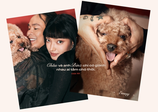 Châu Bùi chia sẻ: "Châu với anh Binz thì anh luôn nói với Châu là em giỏi, em phải cố lên; và Châu cũng luôn nói rằng những gì anh Binz làm quá hay, quá tuyệt. Châu luôn muốn mọi người xem trọng những gì Châu làm ra, và anh Binz luôn làm vậy với Châu, Châu cũng làm vậy với anh. Cả hai cũng trân trọng những gì người này làm vì người kia, và không coi đó là điều đương nhiên. Châu và anh Binz chỉ có giành nhau ai tắm chó thôi.