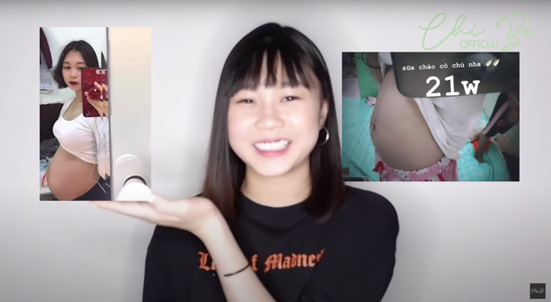 Trong vlog, Chi Bé cũng tiết lộ 2 điều khiến nhiều người tò mò là hình ảnh của cô nàng lúc mang thai và tuổi của bố bé Sữa. Cô nàng tiết lộ nửa kia bằng tuổi mình - sinh năm 2002 chứ không phải sinh năm 1996 như một số lời đồn.