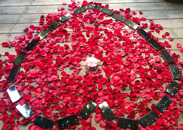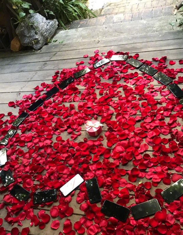 Nam chính đã quyết định bỏ tiền ra sắm liền lúc 25 chiếc điện thoại iPhone X để làm đạo cụ cho màn cầu hôn thêm phần đặc sắc. Dưới sự giúp đỡ của đội ngũ bạn bè thân thiết của cô gái, chàng trai đã xếp 25 chiếc iPhone X mới toanh thành hình trái tim trên nền những cánh hoa hồng đỏ. Chỉ chờ cô gái bị bạn bè "lừa" bước vào, anh chàng ngay lập tức quỳ xuống và lấy ra chiếc nhẫn kim cương được đặt thiết kế riêng từ trước để nói lời cầu hôn lãng mạn tới bạn gái.