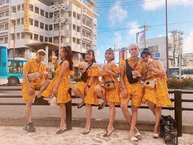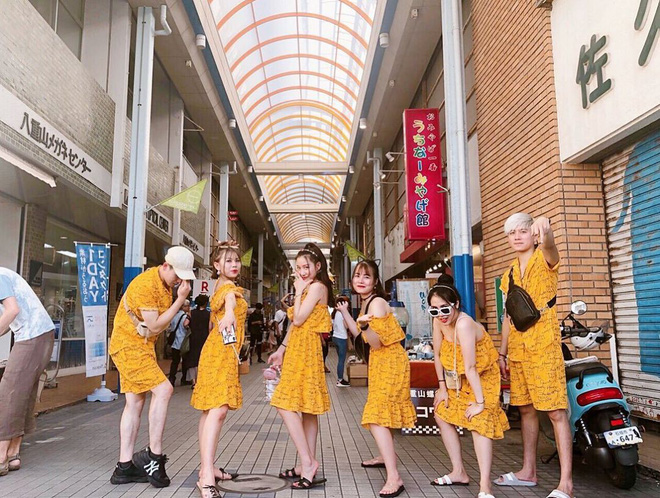 Nhóm bạn trẻ trong bộ đồ "thật là vàng tươi" này chụp hình nhóm đầy cool ngầu khi đang du lịch "xứ sở mặt trời mọc" Nhật Bản.