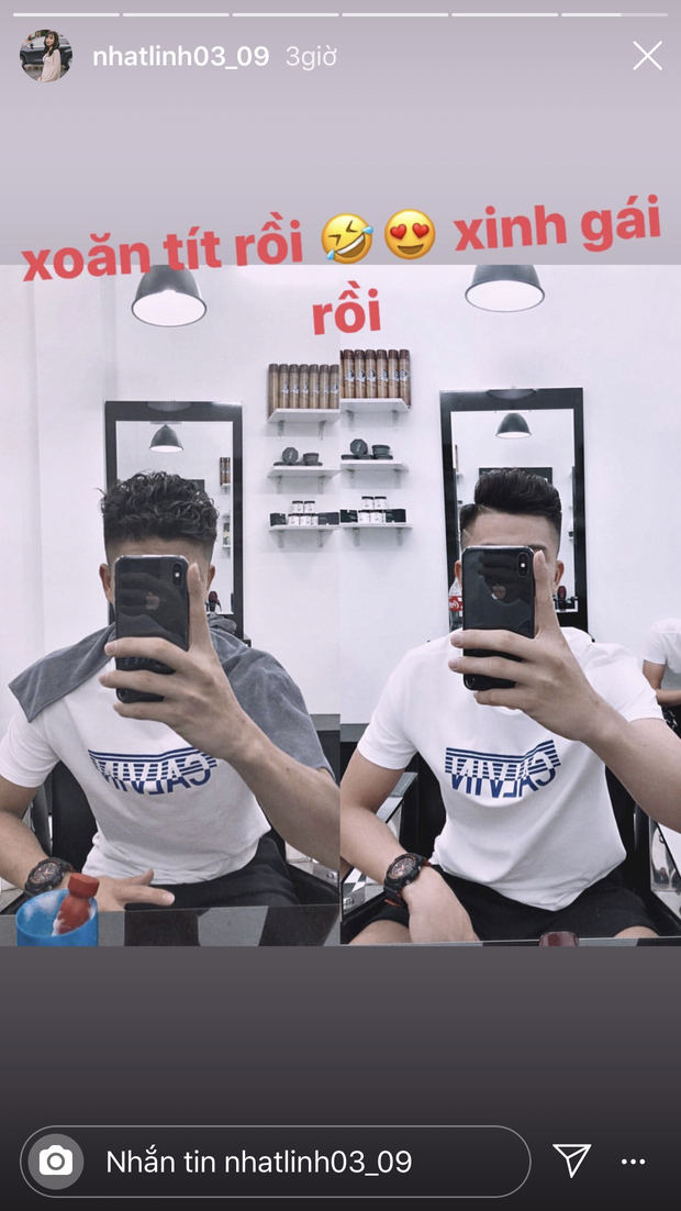 Dùng tài khoản riêng tư của mình, nam cầu thủ CLB Sông Lam Nghệ An không ngần ngại thả tim nhiệt tình cho gái đẹp. Đã thế anh còn lộ khoảnh khắc check-in cùng thời điểm, địa điểm với tình mới. Và cách đây vài tiếng trước, Nhật Linh đăng story ảnh một chàng trai che mặt với caption thân mật. Dù không lộ rõ chi tiết nhưng dân tình vẫn có thể nhận ra đây chính là "Đức Cọt" nhờ kiểu rẽ ngôi tóc và chiếc đồng hồ thể thao thân quen.