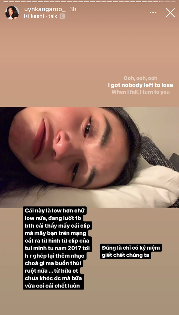 Không một cô gái nào có thể dửng dưng như không, nhất là khi UynKit đã trải qua một mối tình kéo dài 4 năm. Khi vừa chia tay Anh Kiệt, Phương Uyên không có nhiều động thái đặc biệt nhưng khi xem lại những hình ảnh cũ hay những đoạn clip được fan làm tặng, cô đã phải đầu hàng cảm xúc của mình.