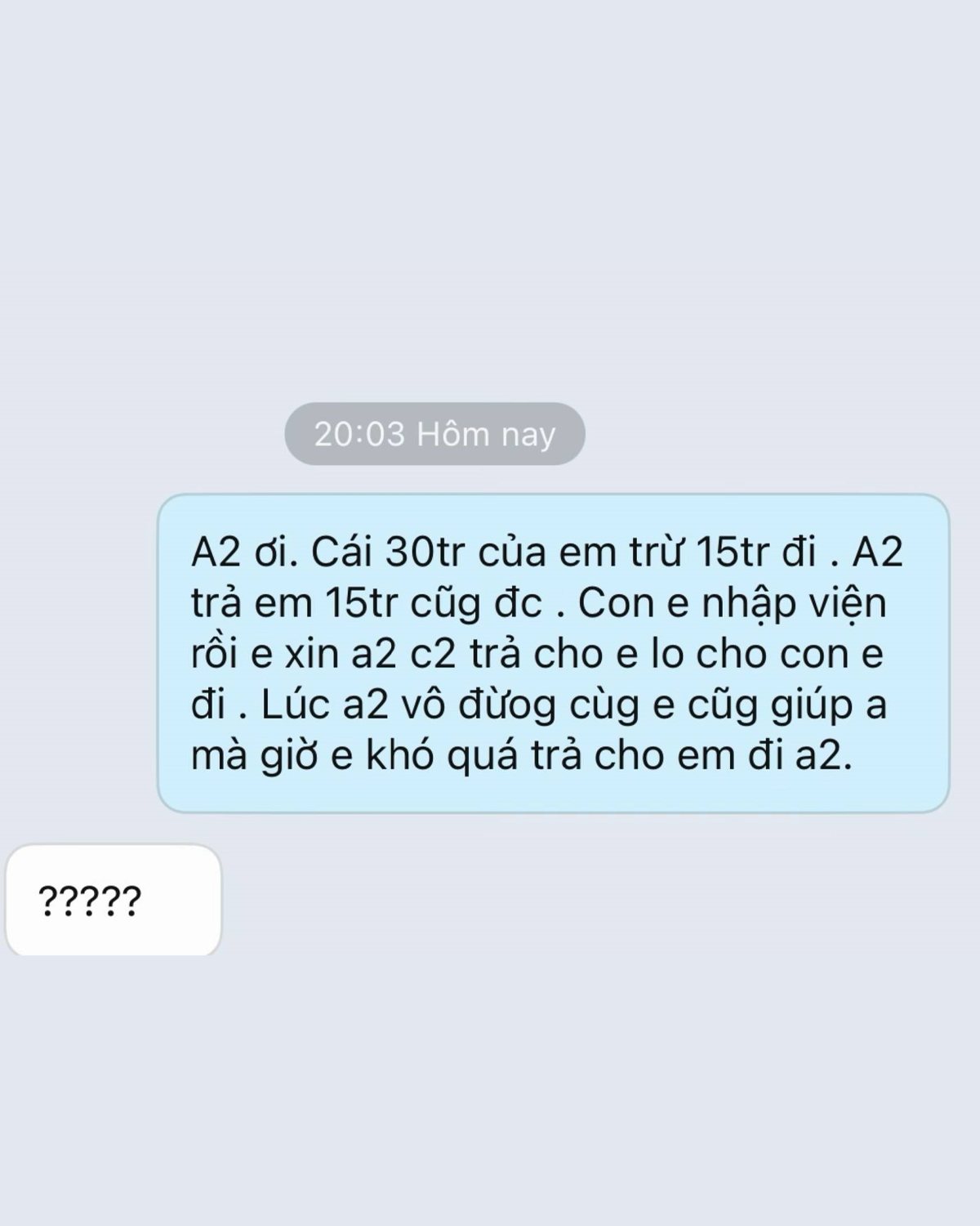 Trước những dòng tin nhắn tha thiết xin lại tiền của cô gái, tất cả chỉ là những dấu chấm hỏi đầy khó hiểu của người anh.