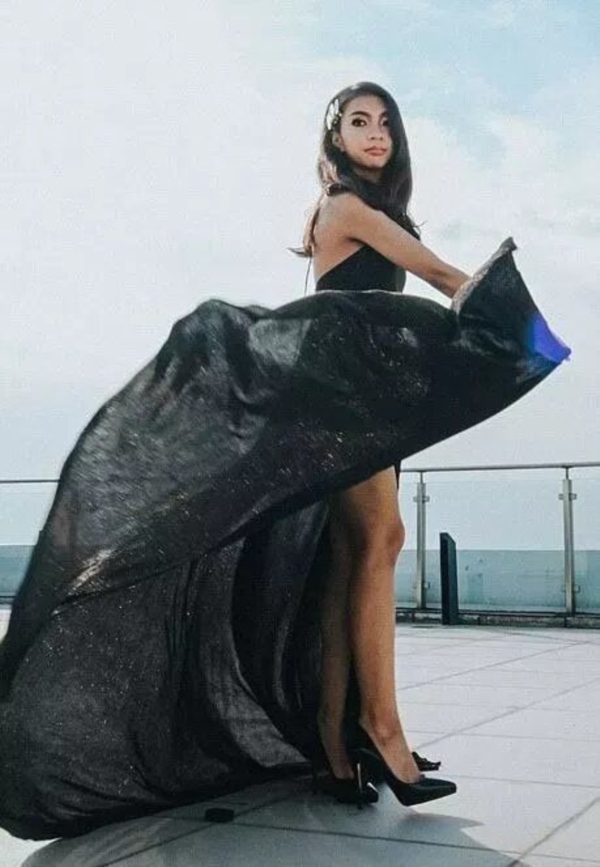 Chiếc váy thứ hai của thiếu nữ nhà giàu được thiết kế táo bạo hơn với tone màu đen huyền bí. Danica khoác lên người bộ váy này khi những vị khách lớn tuổi đã rời đi, để lại không gian cho lớp trẻ tha hồ vui chơi và nhảy múa suốt đêm.