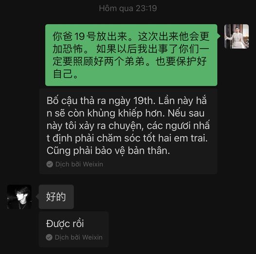 "Chiều nay 1 cuộc điện thoại gọi từ trại giam ra với giọng quen thuộc không cần nói là ai chắc mọi người cũng đoán ra được. Kết thúc cuộc nói chuyện Hằng không dám kể cho Dịch Dương nghe gì cả, vì nỗi sợ Dịch Dương sẽ tổn thương rồi mang lòng thù hận. Giờ chỉ còn Hằng và gia đình Hằng mới là hậu phương là bến đỗ cho 2 đứa thôi. Nhất Dương đã đủ tuổi trưởng thành và đủ quyền lợi lựa chọn theo ai, Dịch Dương mới 17! Cuộc đấu tranh này biết là gian nan nhưng Hằng sẽ cố vì tính cách Dịch Dương rất mạnh mẽ, không thể để thằng bé sống trong 1 môi trường độc hại để trở thành 1 Tôn Bằng thứ 2 được.