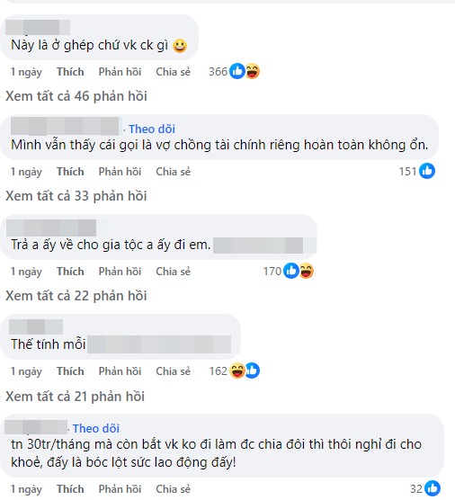 Và ai cũng cho rằng, đây là ở ghép chứ không phải vợ chồng. “Này là ở ghép chứ vợ chồng gì?”, “Ở ghép thế này thế lúc mình ốm đau bệnh tật có mà cho mình ra đường à?”,… một số người bình luận.