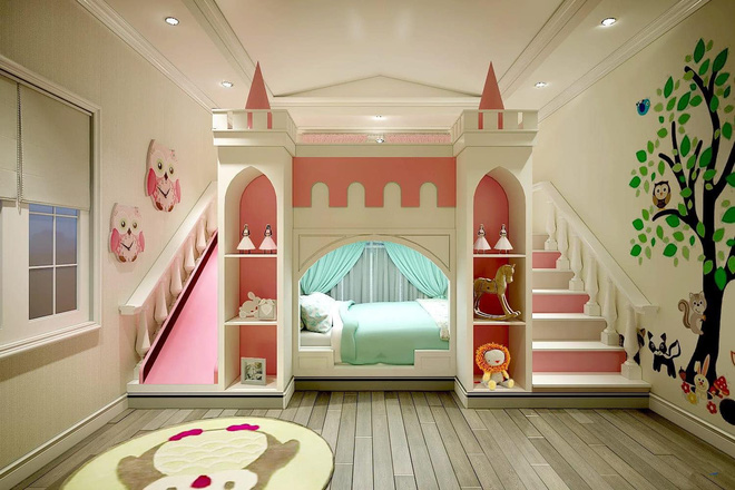 Yuki (5 tuổi) - cô công chúa thứ 2 của gia đình lại được ba mẹ nhận xét rằng có cá tính mạnh, năng động. Có lẽ vì vậy mà căn phòng của Yuki cũng đặc biệt hơn so với chị gái. Dù vẫn là tone màu hồng trắng nhưng lại vô cùng độc đáo khi mô phỏng một toà lâu đài.