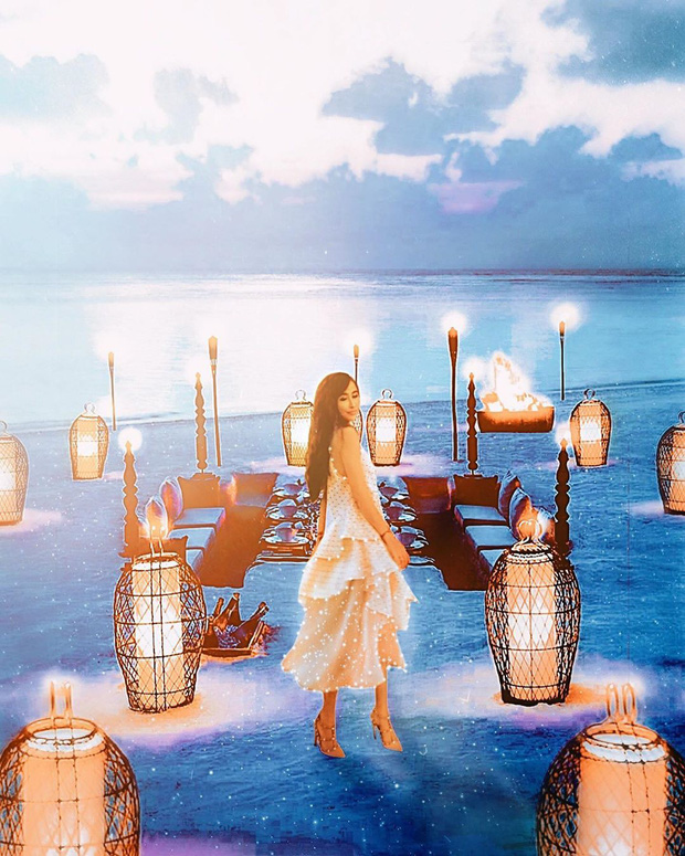 Tất nhiên, một khi đã ghi danh vào bảng vàng “hội mỹ nhân đam mê chỉnh ảnh” thì không thể thiếu màn ghép bầu trời, kéo màu hồng rực lên rồi! Xem loạt hình ở Dubai, Thượng Hải, Maldives, Thái Lan sau là rõ