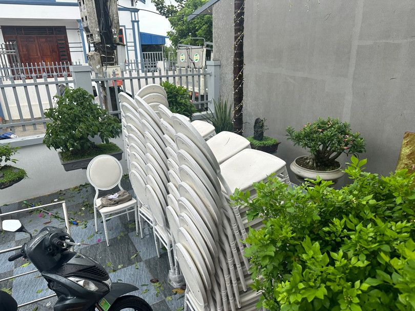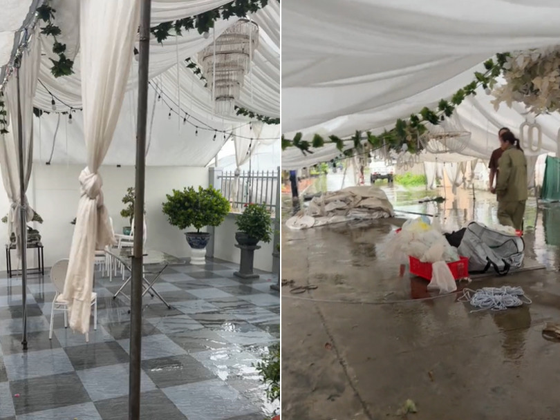 “Trước đó, nhà mình dự định đãi 40 mâm cỗ cưới tại nhà vào chiều nay, rồi sáng mai mời quan khách sang nhà hàng gần đó dự tiệc báo hỷ. Nhưng bão ập về, nhà mình buộc phải thu rạp cưới, mời quan khách sang nhà hàng luôn chiều nay.