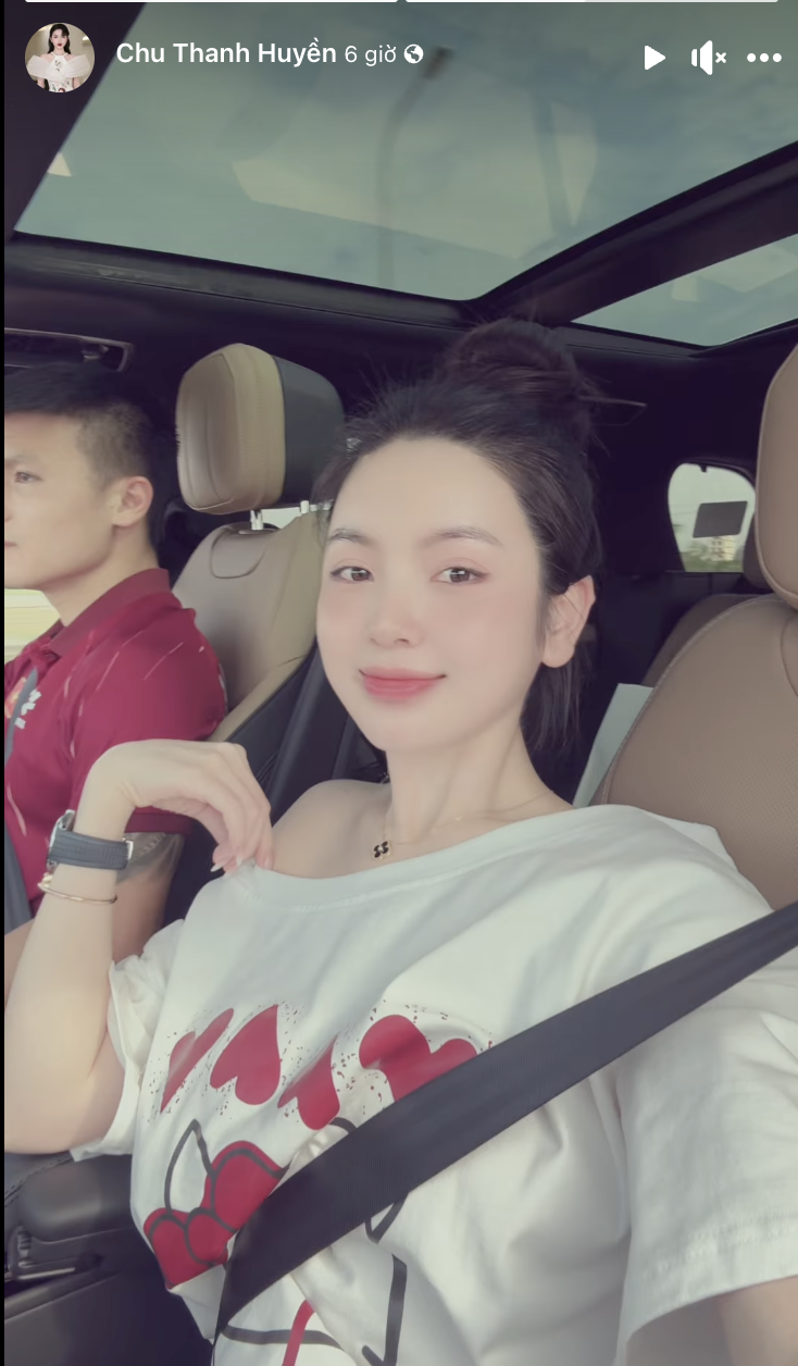 Trên xe ô tô đón chồng về nhà, Chu Thanh Huyền cũng quay video để lộ những món quà đắt đỏ từ Quang Hải. Cô nàng hạnh phúc chia sẻ: "Chồng đi công tác về là có quà cho bé con Lido, mẹ cháu cũng được ké hơi con trai xíu ạ".