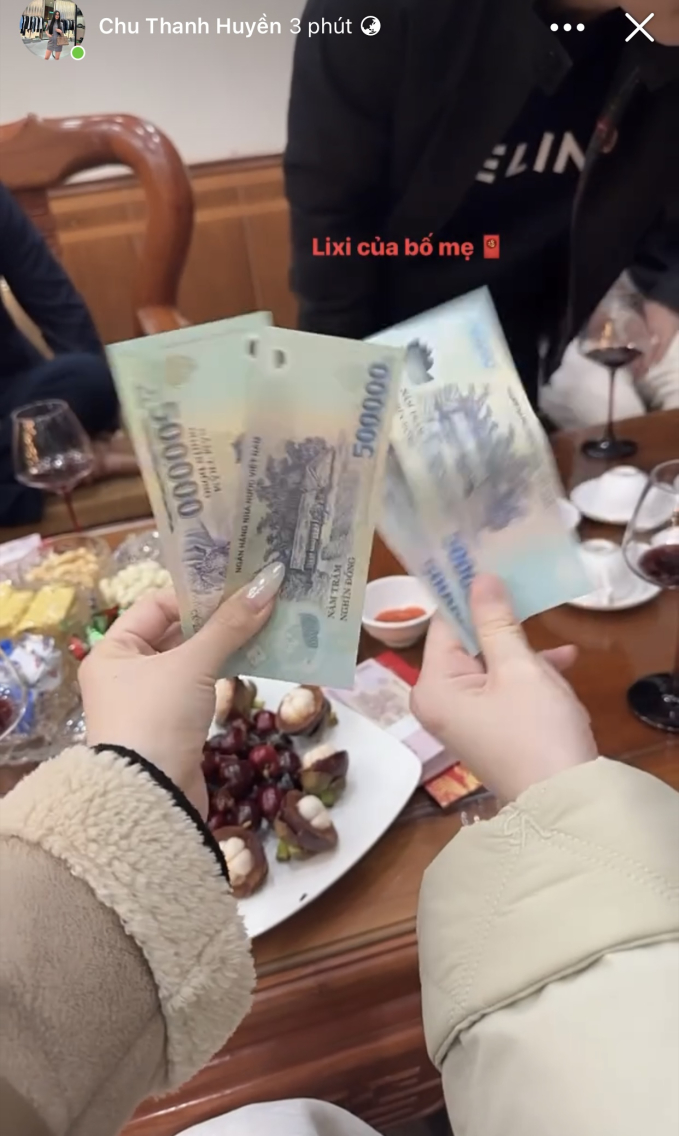 10/02/2024 15:38Chu Thanh Huyền năm đầu ăn tết nhà chồng, khoe được bố mẹ Quang Hải lì xì đầu năm