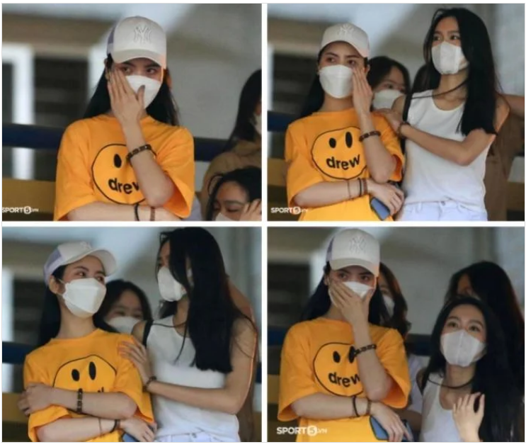 Chu Thanh Huyền và Doãn Hải My từng có thời điểm khá thân thiết, trò chuyện thân tình với nhau. Ảnh; Sport5 Thời điểm này cũng là lần đầu tiên Chu Thanh Huyền (khi ấy vẫn là bạn gái tin đồn của Quang Hải) xuất hiện ở sân Hàng Đẫy xem trận đấu của Hải "con". Khi chứng kiến màn chia tay của Quang Hải và đội bóng đã gắn bó nhiều năm, Chu Thanh Huyền rơi nước mắt vì xúc động. Doãn Hải My lúc ấy đã ở bên cạnh ôm vai người chị động viên, an ủi. Cả hai trò chuyện thân tình. Không những vậy, dân tình còn soi ra, thời điểm đó, Chu Thanh Huyền và Doãn Hải My còn đeo vòng đôi với nhau.