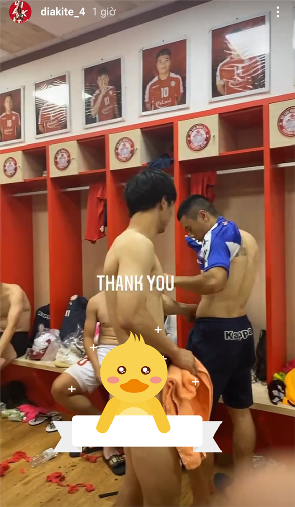 Cụ thể, sau khi kết thúc trận đấu cuối cùng của mùa giải 2020, ngoại binh Diakite đã chia sẻ một đoạn video thú vị trong phòng thay đồ của đội. Anh đưa ống kính lia khắp phòng thay đồ cùng dòng caption: "Thank you/Cảm ơn" đến các đồng đội.