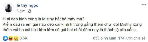 Ngay sau đó, dân tình đã soi ra cô gái trong đoạn clip được đăng tải không phải là MisThy. Dù ai cũng biết đây chỉ một lời đồn thổi, một chiêu trò giật gân để câu view và tương tác trên Facebook và việc MisThy lên tiếng bảo vệ mình là hoàn toàn đúng. Tuy nhiên, những lời lẽ khá kích động trong comment nhận đến hơn 500 lượt like kia là không phù hợp với người có sức ảnh hưởng với giới trẻ như MisThy.