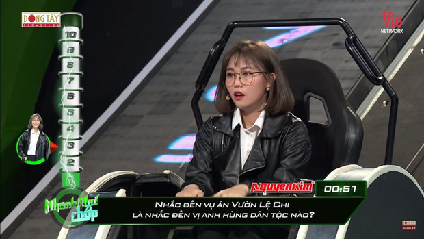 Đỉnh điểm khi được hỏi: "Nhắc đến vụ án vườn Lệ Chi (Lệ Chi viên) là nhắc đến vị anh hùng dân tộc nào?". Cô nàng đã đáp rằng: "Võ Thị Sáu". Rõ ràng những câu hỏi trong chương trình không quá khó và ít nhiều cũng thuộc vào phần kiến thức đã được học ở trường, vậy mà cô nàng vẫn có thể trả lời sai được.