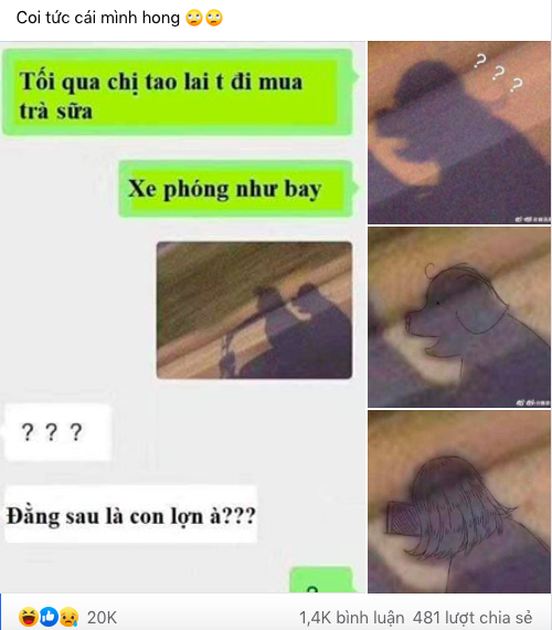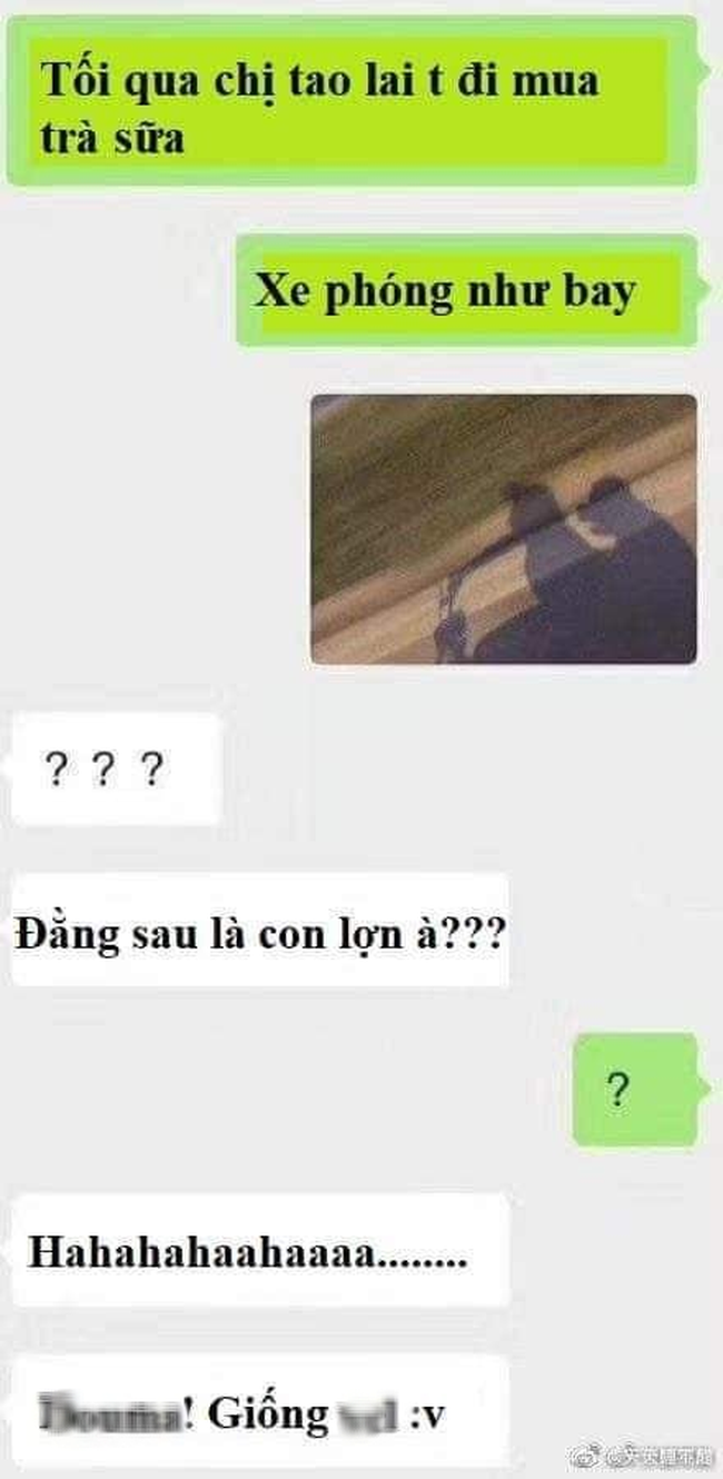 Chuyện sẽ chỉ dừng lại ở đây nếu như cô bạn giàu trí tưởng tượng kia lại "soi" ra hình ảnh có phần "bất thường" trong bức ảnh nhận được. Cô nàng chẳng thấy bạn mình ngồi sau đâu mà lại thấy hệt như một... chú lợn đang ngồi sau xe vậy.