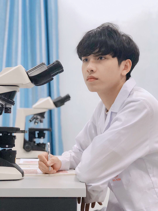 Anh Dũng khiến hội chị em mê mệt trước hết bởi phong thái điển trai, gương mặt baby có phần đối lập với bộ áo blouse đầy khí chất. Nam sinh đang theo học một trong những ngành Y cao điểm nhất, cậu bạn chia sẻ cũng rất chật vật để có thể qua môn.
