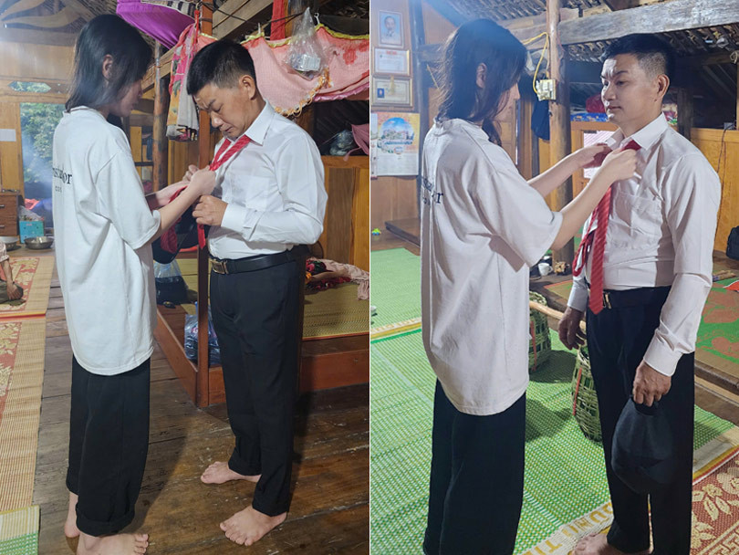 “Con gái chuẩn bị cho bố đi đón vợ (mẹ đẻ của con gái). Anh chị lấy nhau đã hơn 20 năm, do gia đình không có điều kiện nên chỉ ăn hỏi rồi đăng ký xong về ở với nhau.