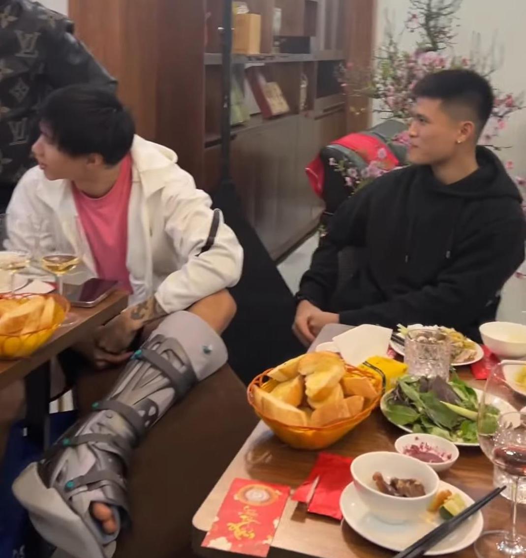 Những ngày cuối năm hội cầu thủ bóng đá Việt Nam vừa hoàn thành các trận đấu trước khi nghỉ Tết, vừa tranh thủ tụ tập cùng bạn bè tổ chức tiệc tất niên. Mới đây dàn cầu thủ Duy Mạnh, Đoàn Văn Hậu, Văn Toàn, Tuấn Hải cùng tham gia một bữa tiệc của người quen. Điều khiến dân tình bất ngờ là hình ảnh của Văn Hậu với cái chân nẹp do chấn thương.