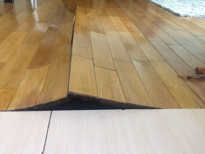 Sàn gỗ bị phồng rộp là tình trạng thường gặp sau khi ngập nước.