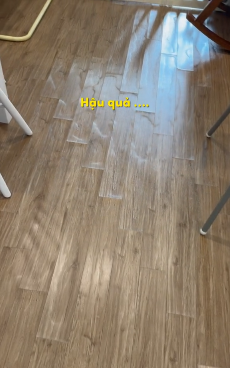 Với tình trạng sàn gỗ bị như thế này, cô cho biết bản thân "vụn vỡ" khi nghĩ tới số tiền phải chi để thay sàn gỗ mới. Tốn tiền là một chuyện, còn tốn thêm công sức nữa, đặc biệt là với những gia đình có con nhỏ.