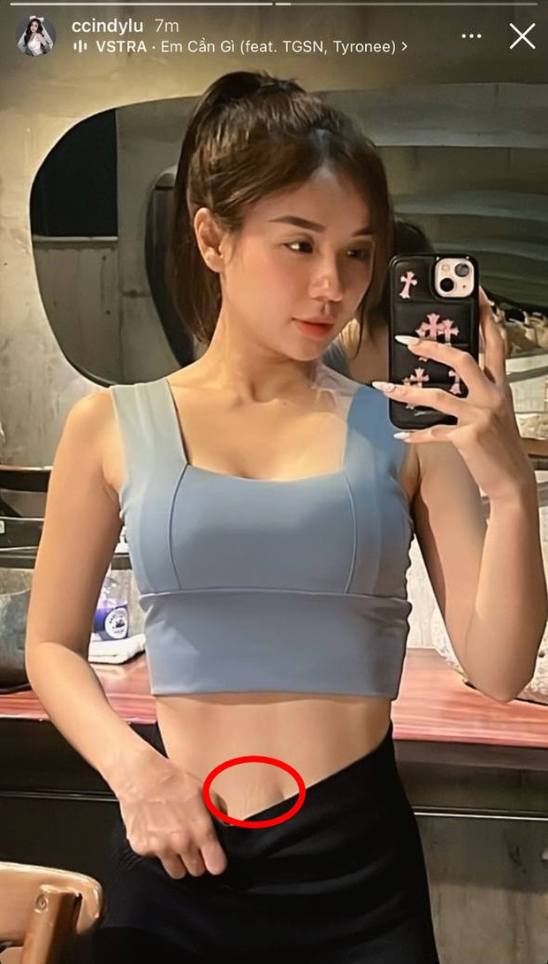 Chỉ nhìn lướt qua, hẳn nhiều người phải xuýt xoa vì vóc dáng gọn gàng của “chị” mẹ 2 con. Để có được thành quả này, hẳn cô nàng đã phải đổ không biết bao nhiêu mồ hôi ở phòng tập. Tuy nhiên khi để ý kỹ càng hơn, dân tình cũng phát hiện ra những vết rạn mờ mờ ở vòng eo của Cindy Lư.