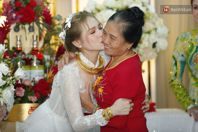 | Cô dâu cười tít mắt khi được trao của hồi môn |