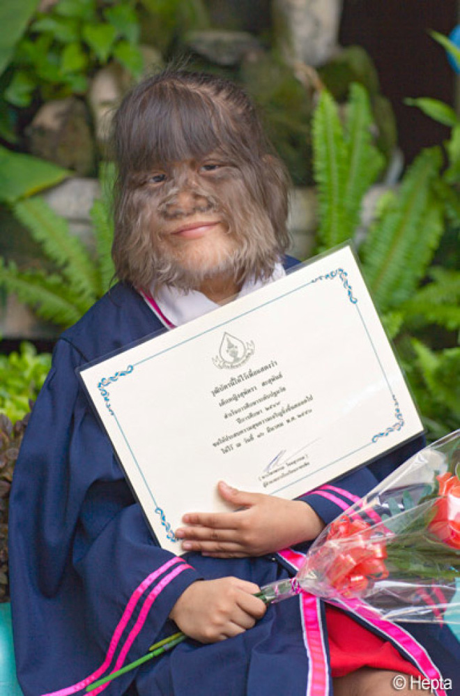 Được biết, đặc điểm dị thường này của cô bé Thái Lan là do mắc hội chứng Ambras - bệnh da bẩm sinh hiếm gặp, gây ra sự phát triển mạnh mẽ ở tuyến lông trên cơ thể trừ lòng bàn tay, lòng bàn chân và niêm mạc. Trên thế giới, chỉ mới 50 trường hợp được ghi nhận.