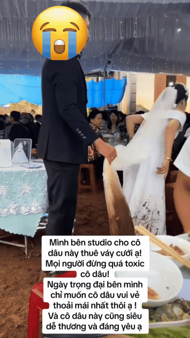 Chủ studio cho biết: "Mình bên studio cho cô dâu này thuê váy cưới ạ! Mọi người đừng quá toxic cô dâu. Ngày trọng đại bên mình chỉ muốn cô dâu vui vẻ, thoải mái nhất thôi ạ. Cô dâu cũng siêu dễ thương và đáng yêu".