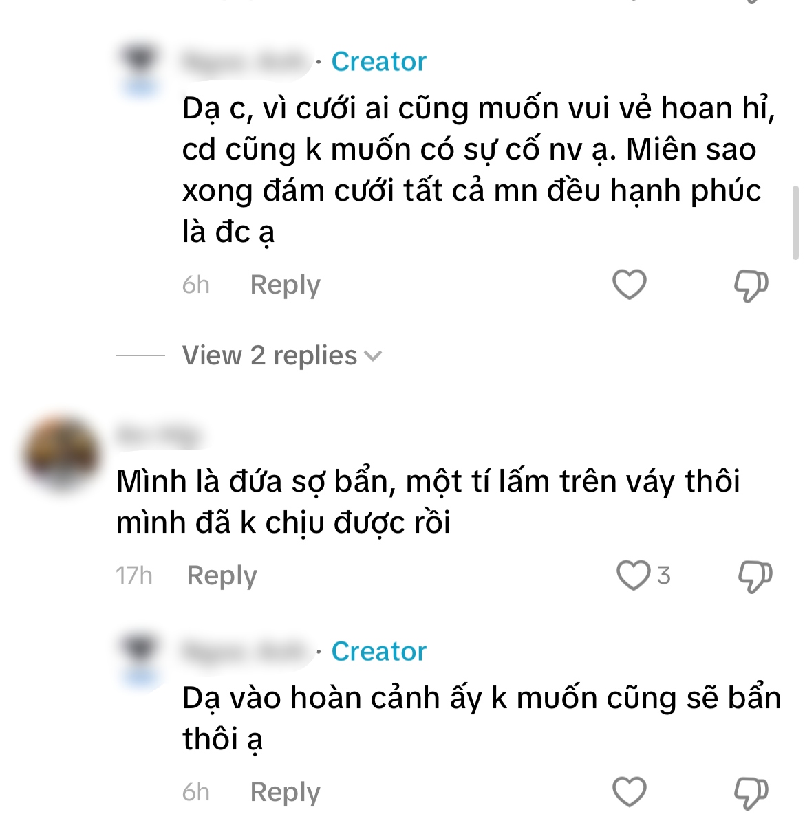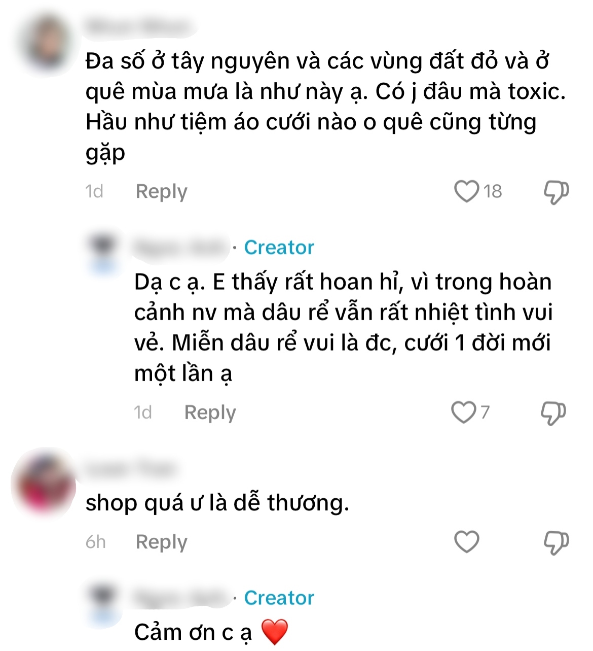 - "Trời ơi, đọc comment mà thấy shop dễ thương xỉu, chứ nhiều bên khác là bóc phốt cô dâu lên mạng rồi".