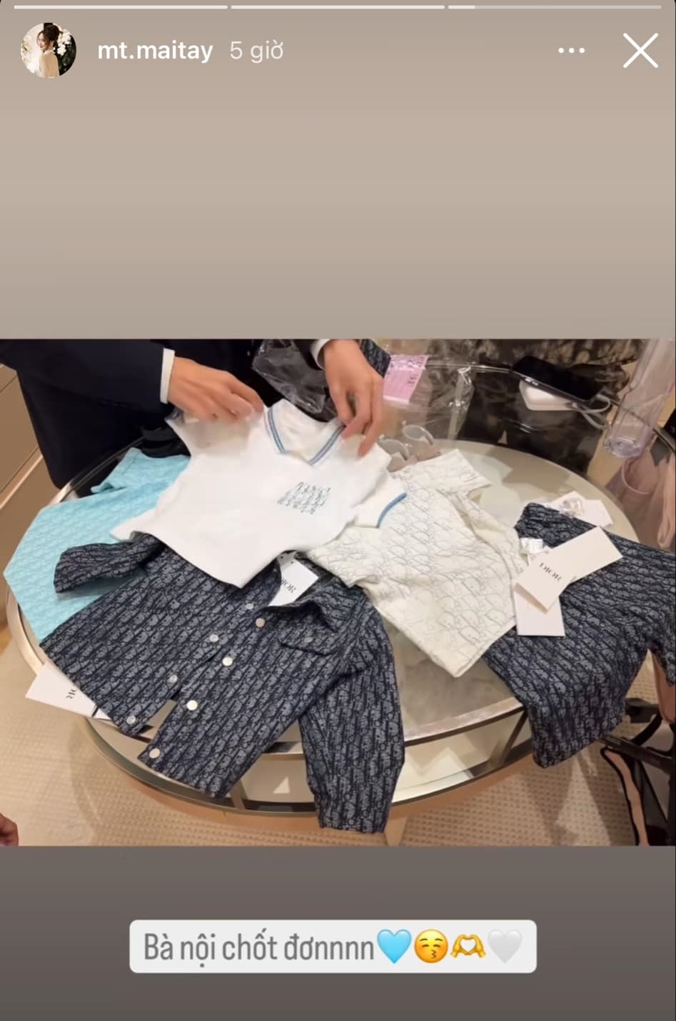 Sau 5 tháng kết hôn, Mai Tây từng thông báo thông báo mang thai con đầu lòng. Mỹ nhân Gen Z còn khoe được mẹ chồng dắt đi mua đồ hiệu cho cháu nội khiến dân tình xuýt xoa khen ngợi. Tuy nhiên từ đó cho đến nay, Mai Tây gần như trở nên kín tiếng hơn trên MXH. Cô nàng không còn đăng tải hình ảnh mới, chỉ đăng story nhưng cũng giấu nhẹm diện mạo. Các nội dung chủ yếu mà Mai Tây đăng tải chỉ là đi ăn uống cùng chồng, bạn bè.