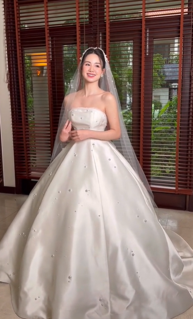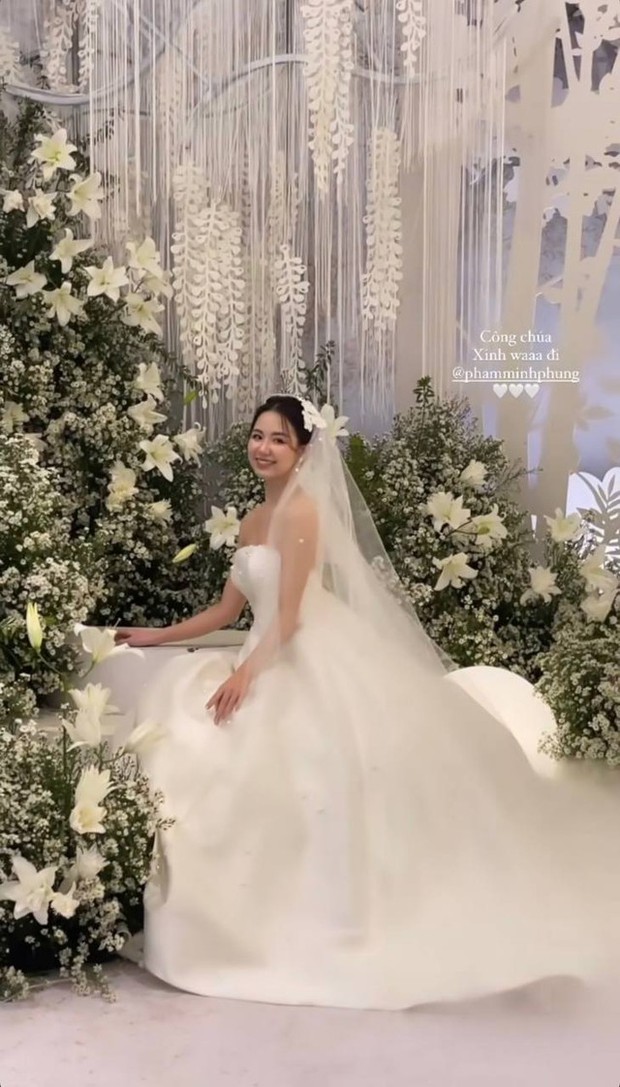 Ngoài không gian xịn xò, chắc chắn phải nhắc đến nhan sắc nổi bật, toả sáng của cô dâu Minh Phụng. Thay vì xoã tóc như trước, lần này Minh Phụng chọn kiểu tóc búi gọn gàng, khoe trọn gương mặt với nét đẹp phúc hậu, dịu dàng của mình. Nụ cười tươi tắn, rạng rỡ của cô dâu khiến netizen bày tỏ sự ngưỡng mộ, thích thú vì nhìn ở góc nào cũng thấy xinh.