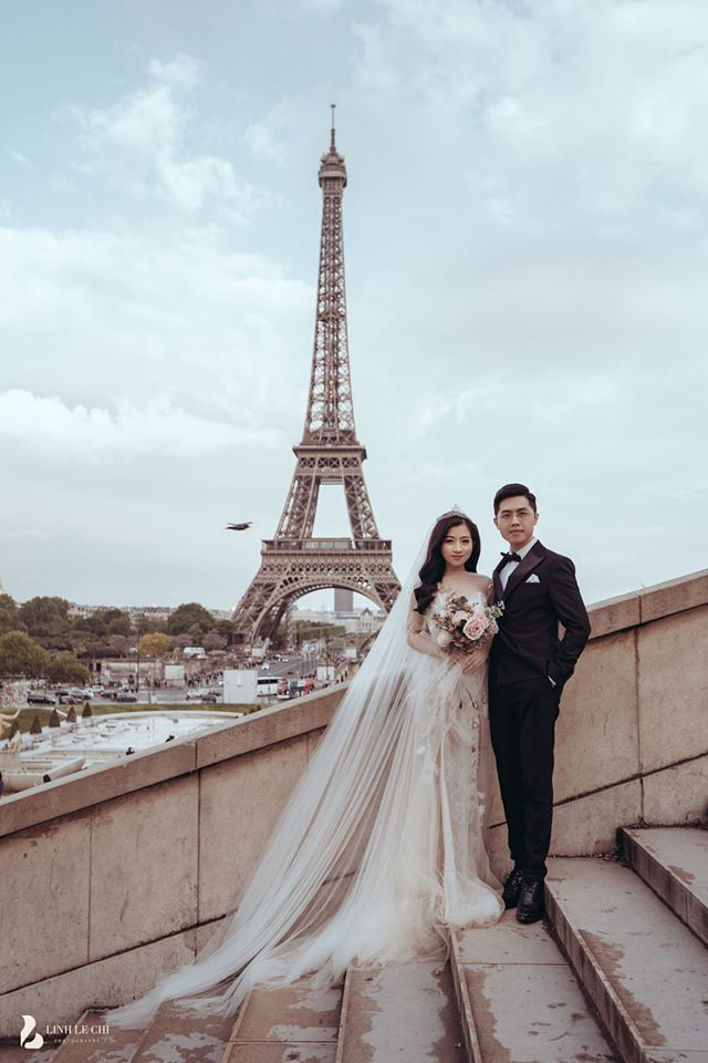 "Toàn bộ ảnh và clip pre wedding của bọn mình được thực hiện tại Paris do ekip Lê Chí Linh thực hiện. Mình chọn Paris vì đây là mong ước từ bé. Mình luôn mong được chụp ảnh cưới tại nơi còn gọi là thành phố của tình yêu và là một trong những thủ đô lãng mạn nhất thế giới", Hằng chia sẻ về bộ ảnh cưới.