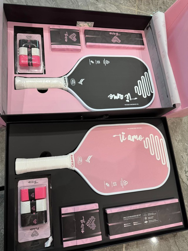 Cũng vì vậy, dịp Valentine này đã xuất hiện bộ vợt với màu sắc chủ đạo hồng và đen cực ngọt ngào dành cho các đôi yêu nhau cùng yêu thích pickleball.