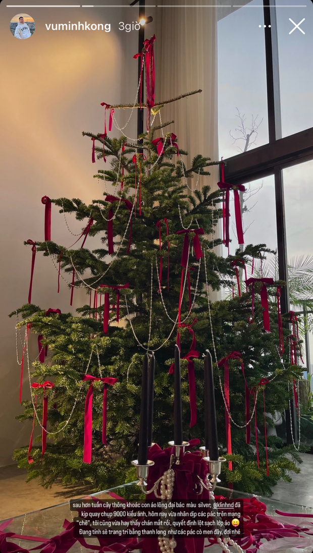 Cây thông Noel của vợ chồng Cô em Trendy (Khánh Linh) và Vũ Minh Kông đang là đề tài gây tranh cãi trong mùa Giáng sinh năm nay. Theo đó cặp đôi đã mua cây thông cao 3m về trang trí trong căn duplex của mình. Tuy nhiên thành quả lại nhận về nhiều ý kiến trái chiều từ dân tình vì có phần rườm rà và rối mắt khi được phủ rất nhiều dây kim tuyến bạc.