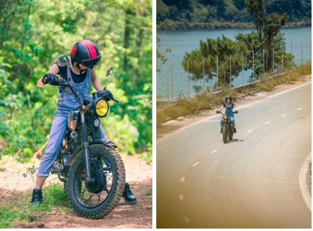 Chẳng những vậy, Ly Nguyễn còn đầu tư cho đam mê của mình khi sắm sửa một chiếc xe mô tô côn tay. Dân đi bụi mà lại còn chơi xe mô tô thì ngầu phải biết!