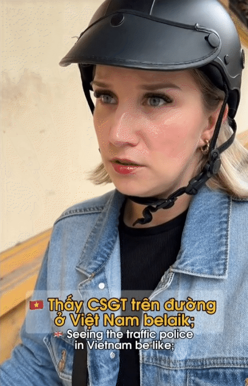 Và dù là người ngoại quốc thì Becky cũng vẫn "rén" khi gặp CSGT trên đường. Nhìn biểu cảm của cô lúc nào không khác gì người bản sứ. Người ta vẫn bảo "hòa nhập chứ đừng hòa tan" nhưng riêng Becky thì tan hoàn toàn luôn rồi.