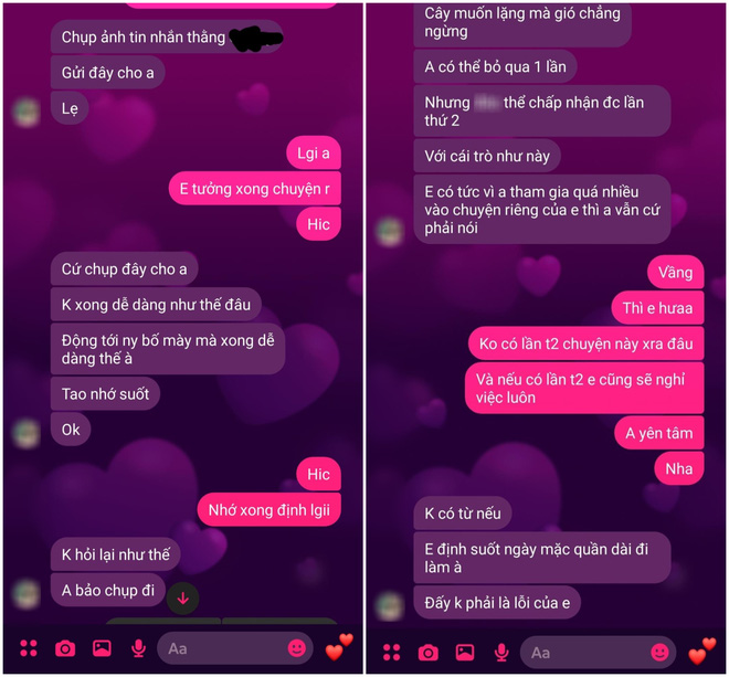 H.M không quên chia sẻ đoạn tin nhắn phản ứng quyết liệt của người yêu khi bạn gái bị đồng nghiệp quấy rối