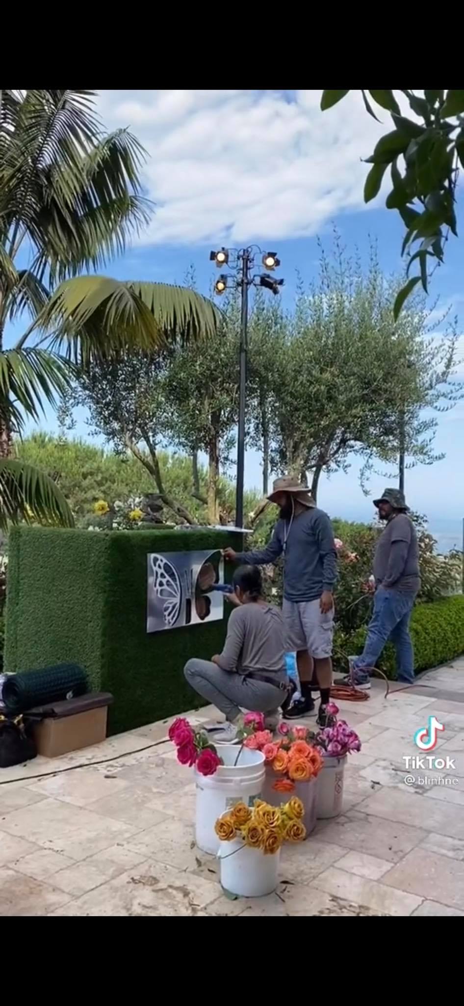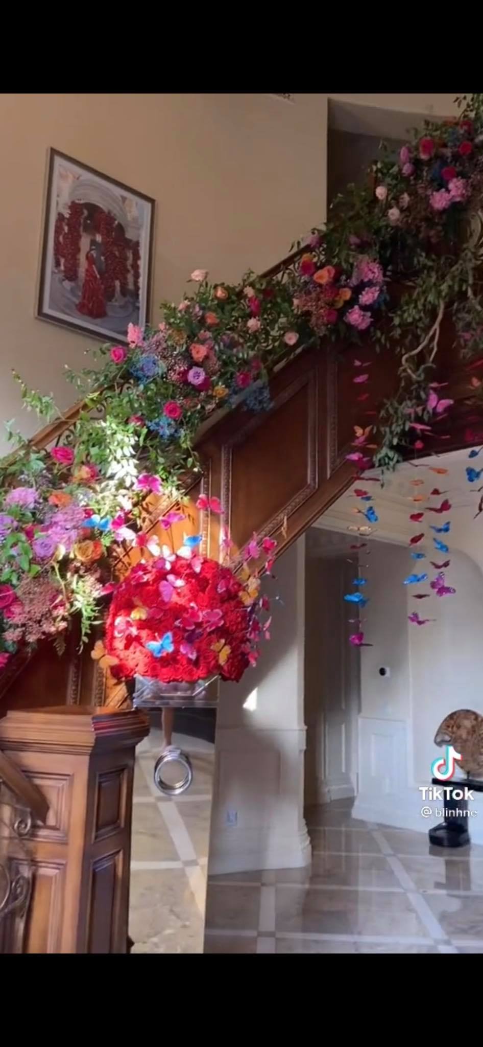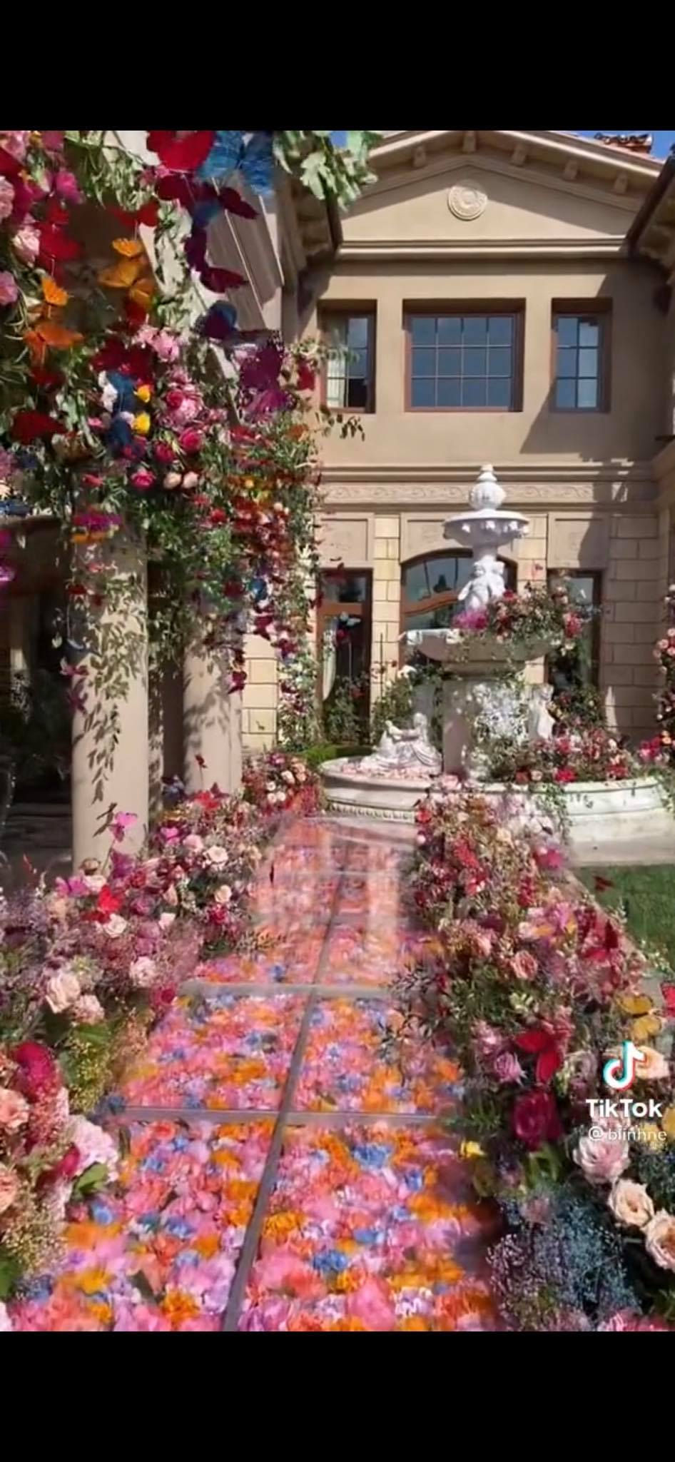 Có thể thấy, concept chủ đạo của bữa tiệc là hoa và những cánh bướm. Không gian căn biệt thự siêu rộng và rất nhiều người đang chuẩn bị những khâu cuối cùng trước khi sự kiện chính thức bắt đầu.