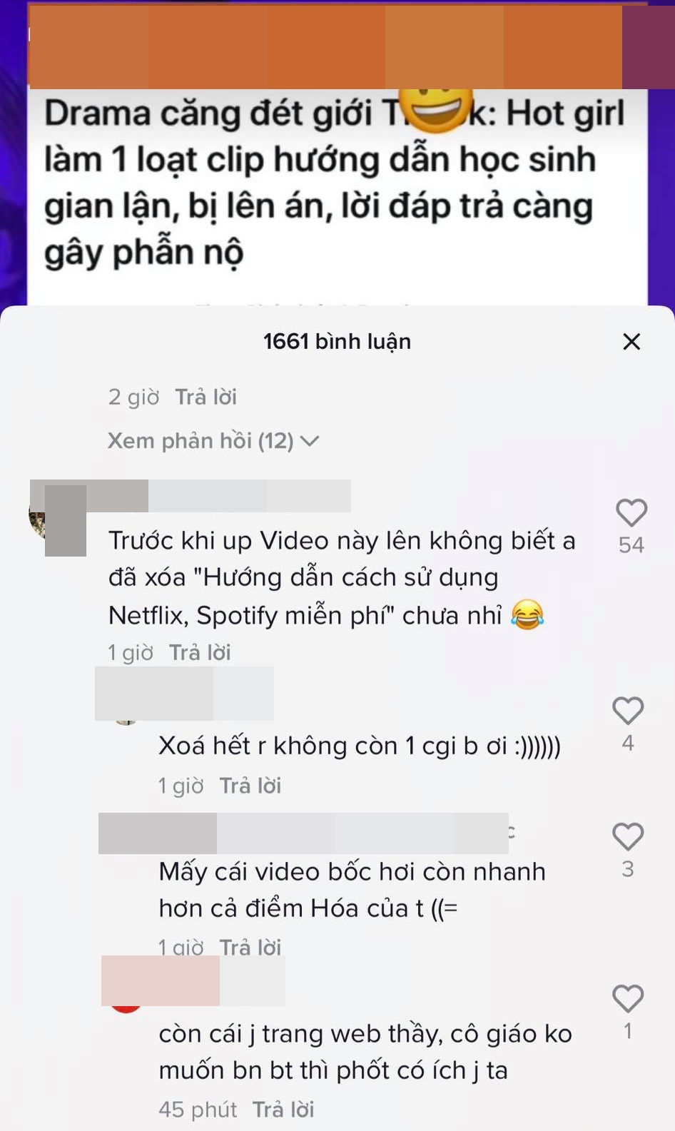 Mới đây, một nữ TikToker có 3,8 triệu lượt thích tên là H.P.N đã bất ngờ gây bão cộng đồng mạng khi chia sẻ những video bày cách gian lận cho học sinh trong lúc học online và làm bài kiểm tra. Những tiêu đề video của cô nàng này đã gây tranh cãi dữ dội như "Cách né bật camera khi học online bằng việc làm màn hình mờ", "Làm sao để ngủ quên nhưng vẫn an toàn khi giáo viên điểm danh hay gọi bài online"...